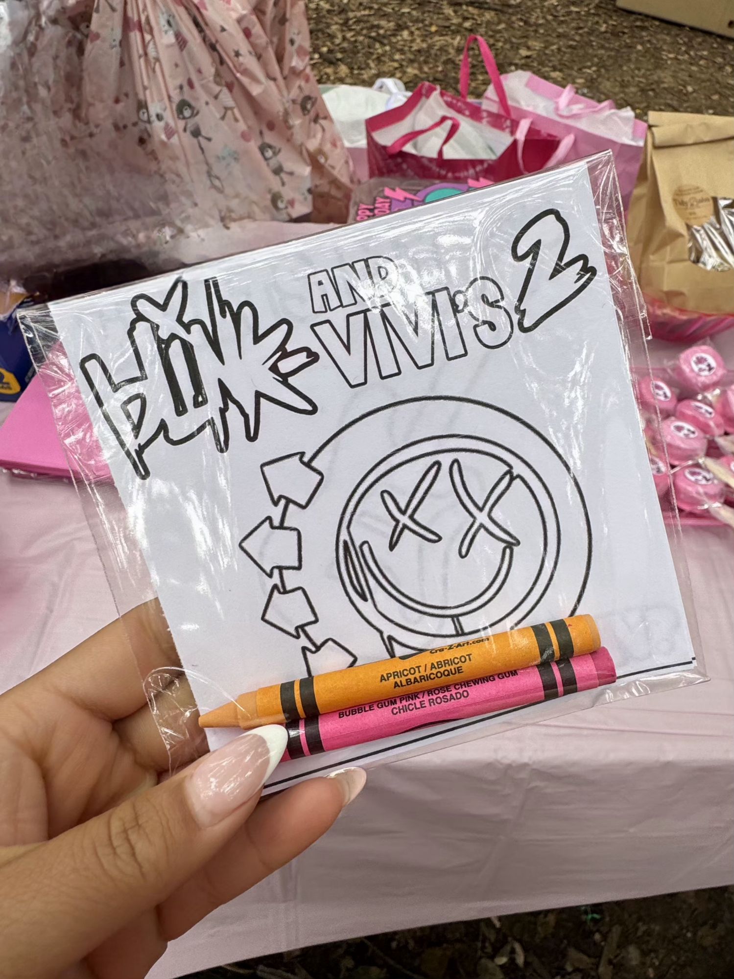 Making her favors was so fun. My favorite was the mini coloring pages. Such an easy way to add some personalization for cheap. I created an outline of her party invitations, used the band logos and song quotes and then printed them onto plain white paper.
